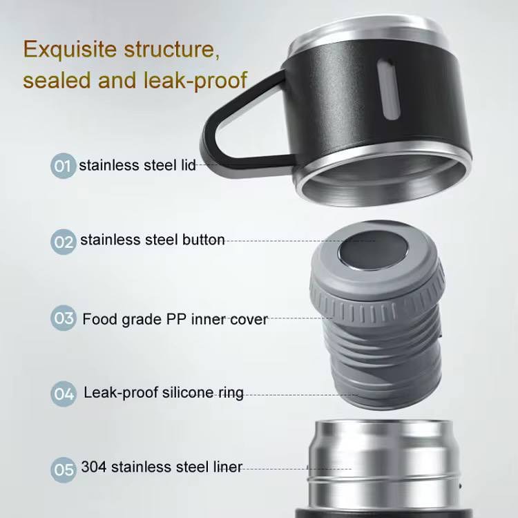 تراول ماگ سه کاپ مشکی و طوسی ————————————— گزینه ای ویژه برای مصرف کننده هایی که به دنبال فلاسکی با حجم کم و نگهداری خوب برای مواقعی تفریح همچون کوهپیمایی و پیاده روی، پیک نیک و … محصول 500 میلی لیتری به طور مفید نوشیدنی داغ را برای مدت زمان 8 ساعت گرم نگه می دارد. آلیاژ بدنه این فلاسک با کیفیت از استیل Stainless Steel 304 است و به همراه یک عدد لیوان استیل که بر روی آن تعبیه و به صورت پیچی باز و بسته میگردد، عرضه می شود. ضمن اینکه این محصول همراه با 2 عدد فنجان اضافی و در بسته بندی متفاوت عرضه شده است. به واسطه بهره مندی از واشر های سیلیکونی، از نشت و خروج هر گونه مایع از درون محفظه جلوگیری میکند. همچنین مناسب برای حمل و نگهداری انواع کافی، دمنوش، چای و نوشیدنی های گرم و همین طور نوشیدنی های سرد در کیف، کوله، ماشین، محیط کار و دانشگاه و …