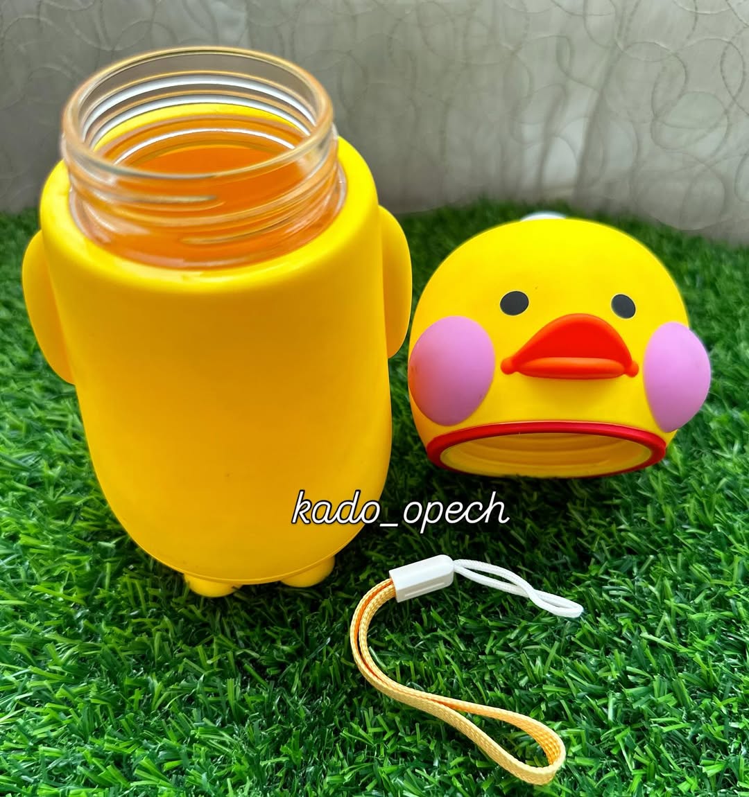 فلاسک با طراحی خاص و کیوت جوجه اردک از جنس شیشه دارای کاور زد حرارت با در بامزه عروسکی که جلو ان رو چند برابر کرده اون رو نسبت به فلاسک های دیگه متفاوت کرده نشکن قابل استفاده برای کودکان مقاوم در برابر حرارت دارای بند آویز به کیف و کوله