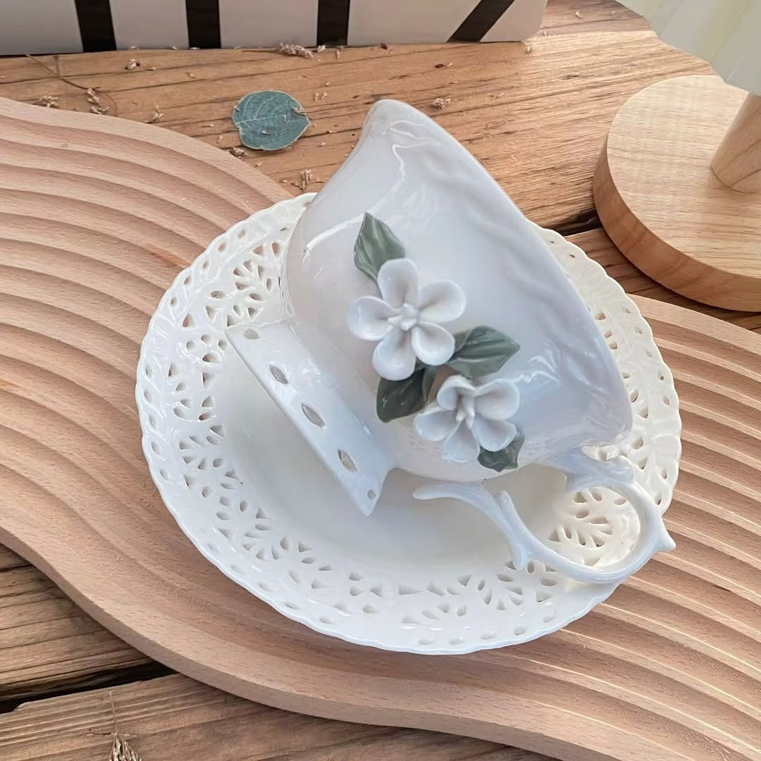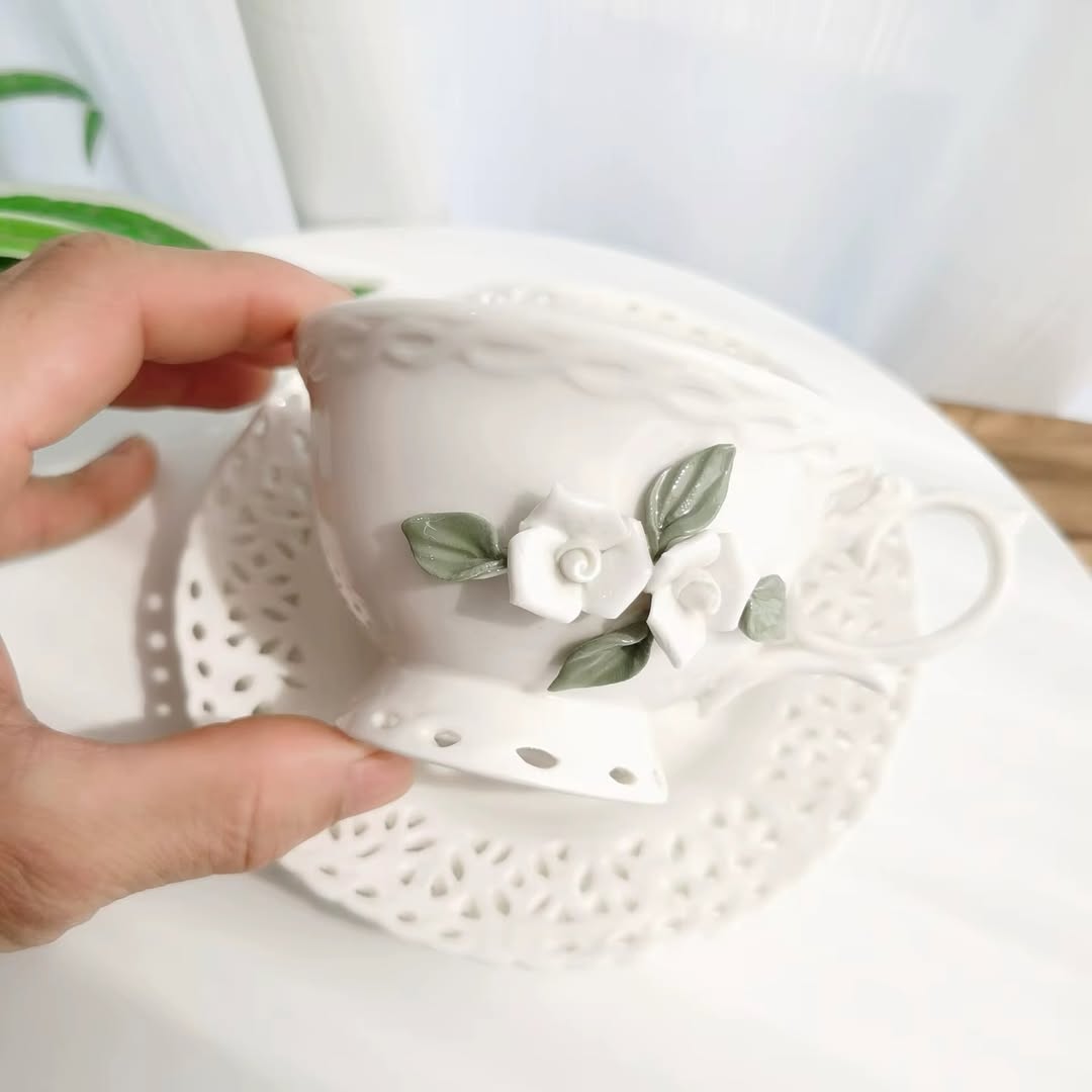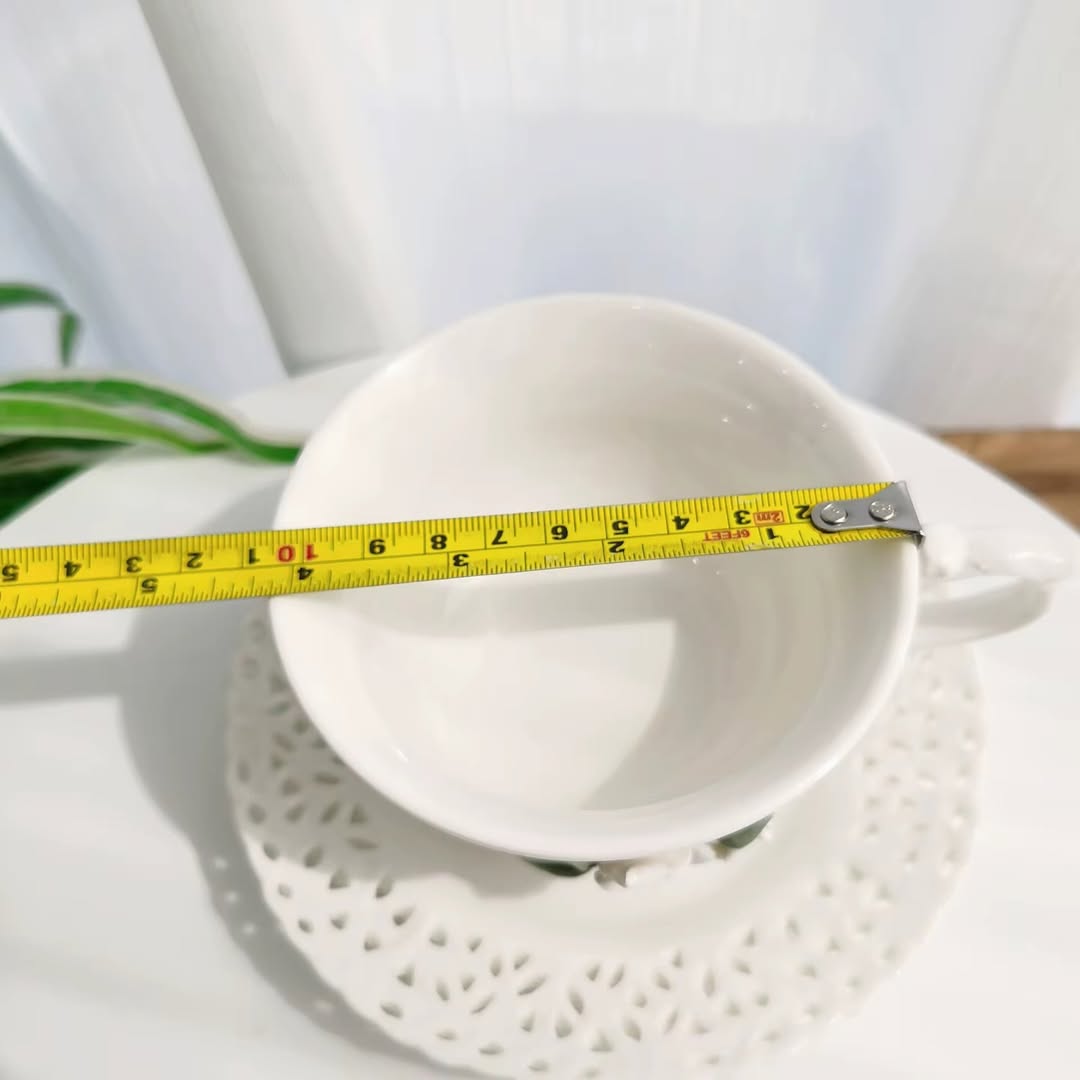 فنجون نعلبکی گل چینی جنس سرامیک وارداتی درجه یک. طرح روی کار بر جسته است. مناسب سرو نوشیدنی های گرم. دو گل متفاوت دارده