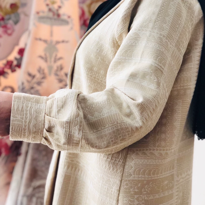 عبای خورشید ژاکارد مزون دوز بسیار با کیفیت و شیک رنگ کرم