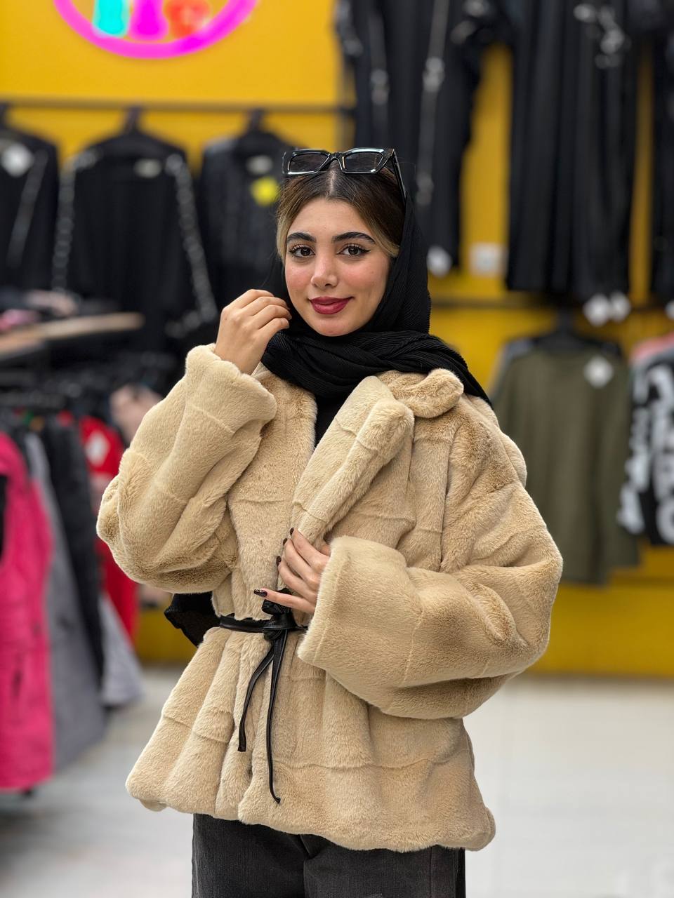 ناموجودپالتو خز کمربندی دارای کمربند و دو جیب کاربردی
